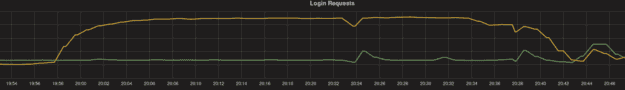 下图中的黄线是故障时段前后的登录请求数量变化趋势曲线,与上述故障时间线吻合: