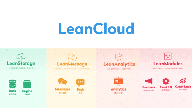 LeanCloud 则完全不同。它提供了四项产品,分别是 LeanStorage(数据、文件存储及云引擎)、LeanMessage(短信、推送及实时通讯服务)、LeanAnalytics(统计分析服务)、LeanModules(各种其他通用组件)。看起来很精简却有些抽象,那这些产品具体又能满足什么需求呢?